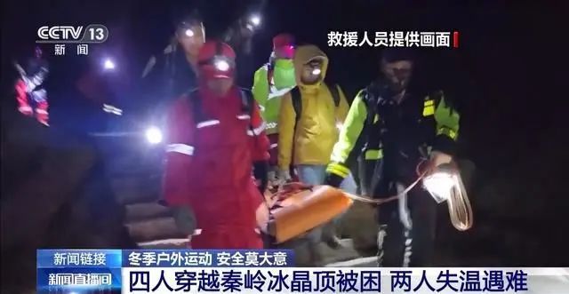 2024年10月21日,陕西西安,有4人从小路夜爬秦岭冰晶顶,在山上遇气温骤降,因没有带足够的保暖衣服、食物、水等,造成失温。